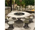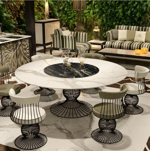 Железные прутья образуют основу, из которой создаются извилистые формы изделия Sirio. Искусное мастерство, использованное для обработки этого традиционного материала, позволяет создавать сложные на вид конструкции. Проницательность дизайнера смягчила суровый вид железа за счет извилистого вида. Мебель, созданная вручную мастерами, приобретает новый роскошный и элегантный вид. Вся мебель этой коллекции обработана, чтобы гарантировать длительное использование на открытом воздухе. Часто используется в сочетании с элементами из коллекций Sole и Canopo для создания оазиса для отдыха на открытых пространствах.
