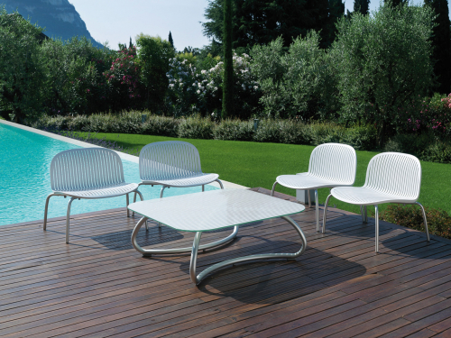 Ножки стула изготовлены из анодированного алюминия, а сиденье и спинка - из полипропилена.