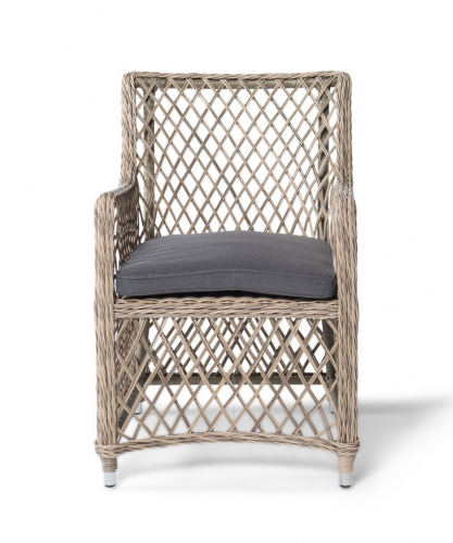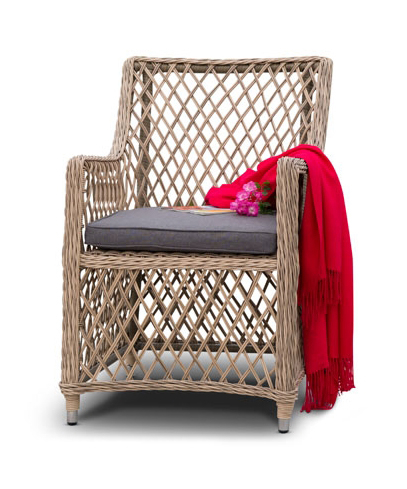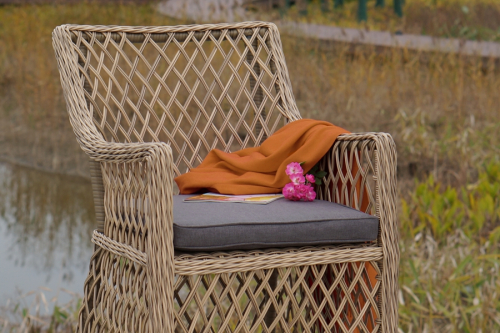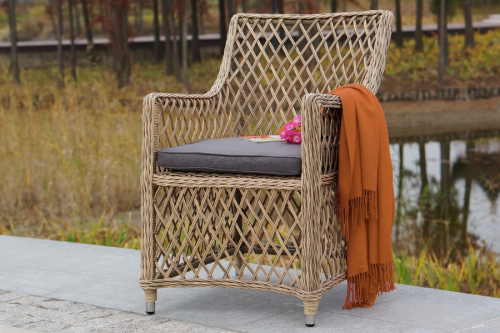 Кресло Латте из высококачественного и неприхотливого искусственного ротанга круглого плетения с караксом из прочного алюминия, выдерживающим нагрузку до 200 кг. Кресло прекрасно подходит для использования в помещении и на открытом воздухе.