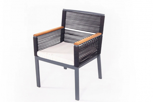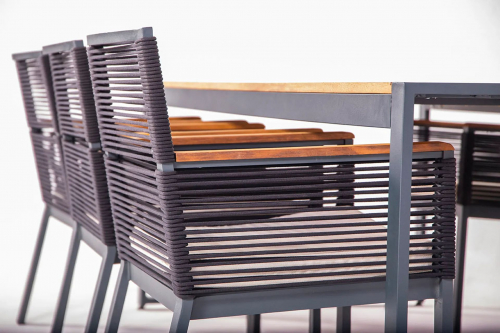 Удобное и стильное кресло Nirvana станет идеальным решением для летних площадок различных заведений или для частных территорий загородных домов. Оригинальными акцентами в данной модели являются плетение из роупа, которое рассчитано на любые погодные условия, и деревянные подлокотники из дерева ироко, отличающегося своей твердостью, прочностью, устойчивостью к перепадам температуры и влажности.