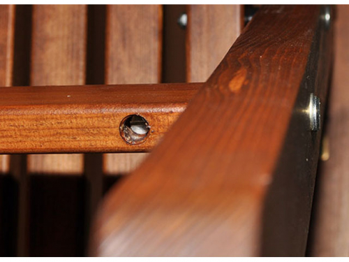 Достоинства данной мебели: 1) многослойное покрытие: - специальная высококачественная морилка итальянского производства, которая не выцветает на солнце и защищает дерево от гниения; - финишное многослойное покрытие: масло с воском не боится ни влаги, ни жары, ни холода; 2) все неподвижные соединения выполнены шип-паз (самое прочное соединение); 3) усиленная конструкция - ножки у кресел, несущие элементы сиденья и спинок толщиной 33 мм, - все детали, на которые приходиться основная нагрузка, выполнены без сучков; 4) фурнитура - анодированная сталь европейского производства.