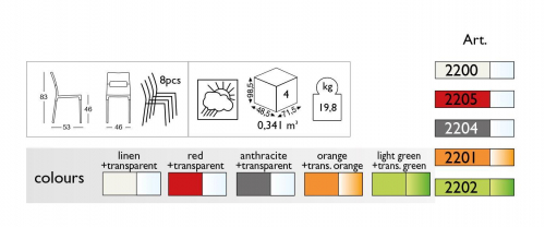 Верхняя часть стула выполнена из поликарбоната.