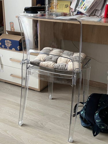 Информация по уходу: прозрачные стулья можно протирать тряпкой из микрофибры, допускается применение нейтрального мыльного раствора. Запрещается использовать спиртосодержащие или ацетоносодержащие (а также им подобные) средства.