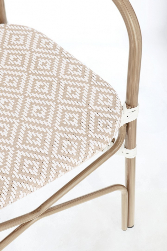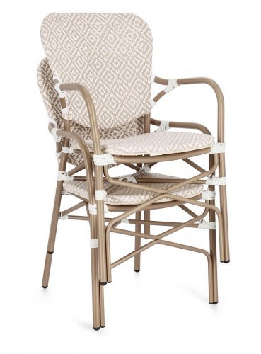 Стильное штабелируемое кресло в французском стиле Cadeira идеально подойдет для кухни, столовой или открытой веранды, сочетая элегантный дизайн с практичностью. Легкий, но прочный алюминиевый каркас обеспечивает долговечность, а плетение из искусственного ротанга устойчиво к влаге, ультрафиолету и перепадам температур, что делает модель идеальной для использования как в помещении, так и на открытом воздухе. Эргономичная форма и изящные детали придают креслу особый шарм, создавая атмосферу уюта и изысканности в духе парижских бистро.