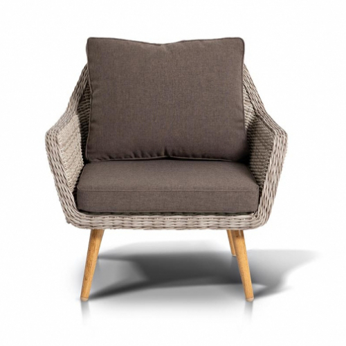 Плетеное кресло Прованс выполнено из искусственного ротанга полукруглого плетения. Этот материал является высококачественным и неприхотливым, выполненым вручную. В солнечных лучах плетение приобретает более светлый и яркий оттенок. Прочный алюминиевый каркас, выдерживающий до 200 кг, алюминиевое основание ножек обеспечивает стойкость к коррозии. Кресло подходит для использования внутри помещения и на открытом воздухе. Подушки выполнены из водостойкой полиэфирной ткани для защиты мебели от дождя и солнца, съемные чехлы серого цвета.