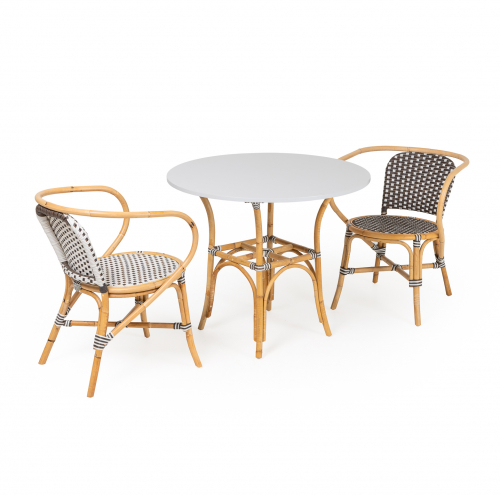 Обеденное кресло Bistrot представляет собой идеальный союз между природой и техникой, между мастерством и инновациями, благодаря сочетанию натурального материала, такого как ротанг, и синтетического и экологичного плетеного волокна.