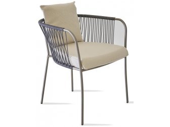 Плетение из роупа является отличительным элементом кресла Diva, создавая привлекательную и текстурированную отделку, охватывающую металлический каркас. Кресла Diva в комплекте с диваном из этой же коллекции идеально подходит для обстановки лаунж зоны на открытом пространстве.