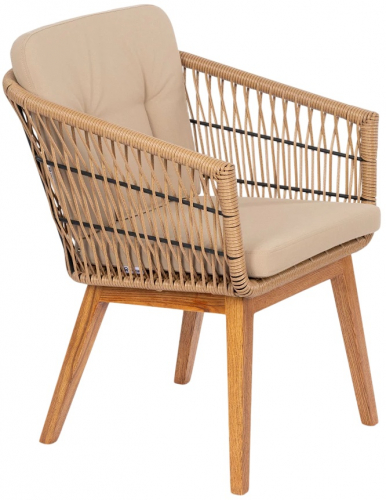 Конструкция кресла продумана для долговечной эксплуатации. Легкий алюминиевый каркас с порошковой окраской обеспечивает жесткость, а подушки из износостойкого олефина устойчивы к погодным условиям и быстро восстанавливают форму.