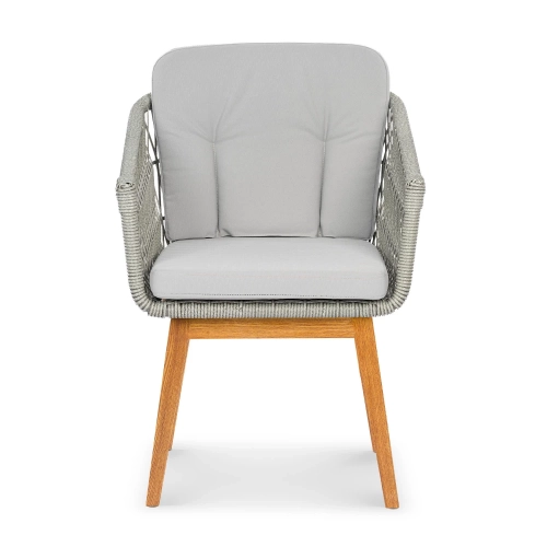 Конструкция кресла продумана для долговечной эксплуатации. Легкий алюминиевый каркас с порошковой окраской обеспечивает жесткость, а подушки из износостойкого олефина устойчивы к погодным условиям и быстро восстанавливают форму.
