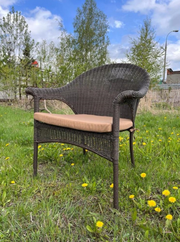 Кресло изготовлено из искусственного ротанга и имеет каркас из высокопрочной стали, оно прекрасно подойдет для использования как в помещениях различного назначения, так и на террасах и открытых пространствах.