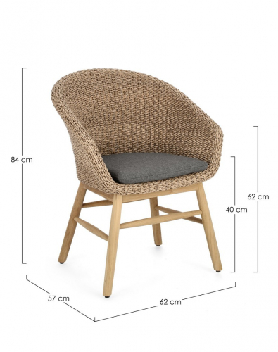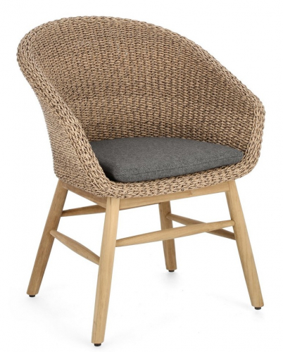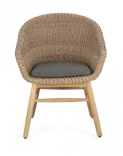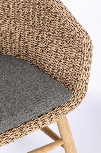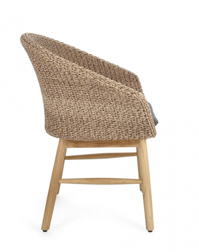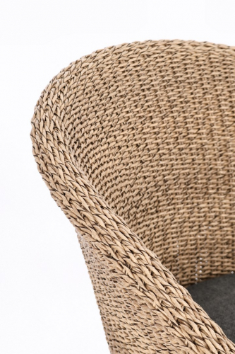 Оригинальное кресло Genesis привлекает внимание своим обволакивающим плетеным корпусом. Он дополняется комфортной подушкой со съемным чехлом из солнцезащитной ткани. Деревянные ножки изготавливаются из высококлассной древесины тика SVLK, являющейся прочной, устойчивой к различным погодным условиям, грибкам и выдерживающей разнообразные атаки паразитов и насекомых. Модель отлично впишется в сады или частные дворики загородных домов.