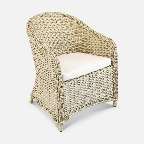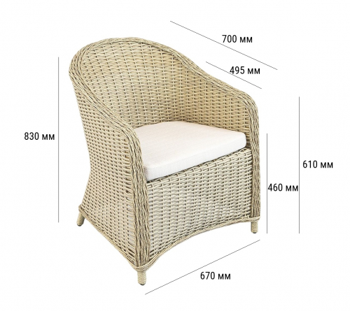 Кресло Primo объединяет в себе утонченность и практичность в каждой детали. Его прочность начинается с цельносварного алюминиевого каркаса и порошковым напылением, исключающим риск коррозии и деформации. Материал отделки - искусственный ротанг, который не выцветает на солнце, не боится дождя и перепадов температур.