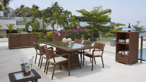 Плетеное кресло Plank из искусственного ротанга цвета Red Pulut и подушками из ткани Sunbrella цвета Linen Champagne. Удобная, лёгкая и красивая классика в наилучшем исполнении. Закруглённые линии и оригинальное ажурное плетение делают эту коллекцию абсолютно востребованной, когда речь идёт об украшении дома, террасы или зоны у бассейна. Идеально дополняетт коллекцию Ebony.