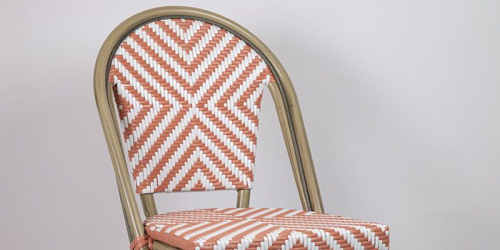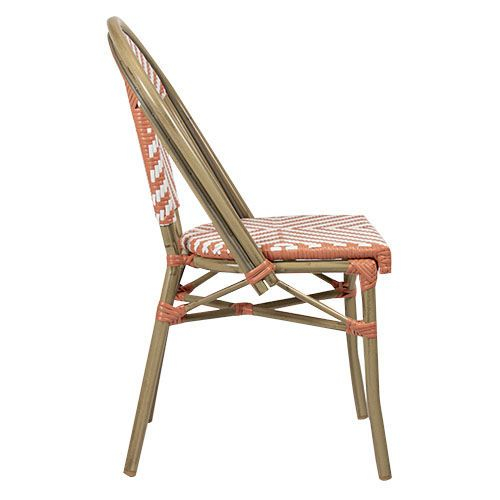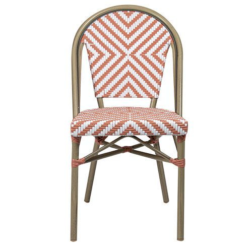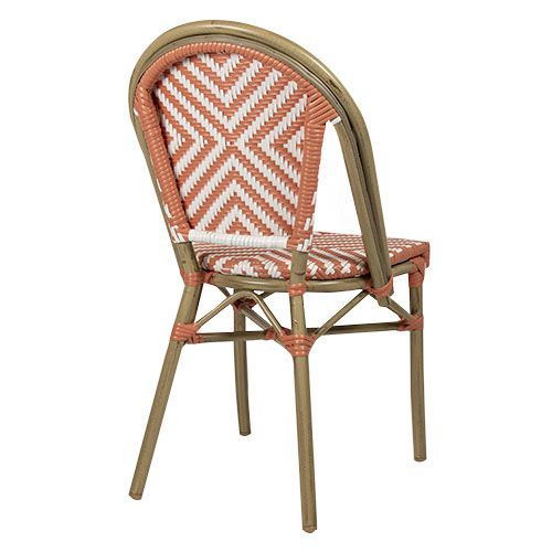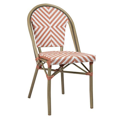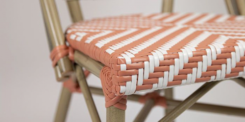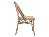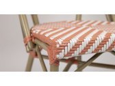 Удивительный, красочный и шикарный стул для летних площадок Toby III идеально вписывается в стиль "Café de Paris". Сочетание алюминиевого каркаса, имитирующего светлый бамбук, и стойкого к УФ-излучению бежево-розового полиэтиленового плетения 5 мм подчеркивает его игривый дизайн.