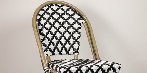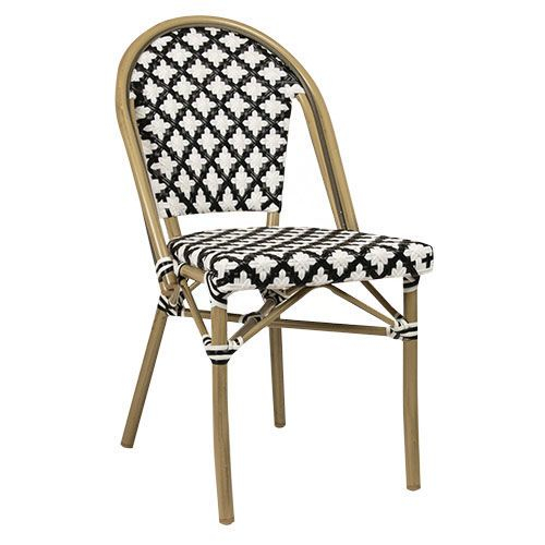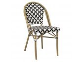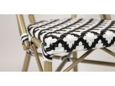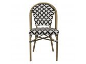 Удивительный, красочный и шикарный стул для летних площадок Toby IV идеально вписывается в стиль "Café de Paris". Сочетание алюминиевого каркаса, имитирующего светлый бамбук, и стойкого к УФ-излучению черно-белого полиэтиленового плетения 5 мм подчеркивает его игривый дизайн.