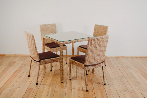 Плетение из искусственного ротанга создает неповторимый стиль, а металлический каркас обеспечивает надежность и долговечность.