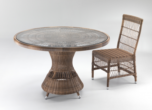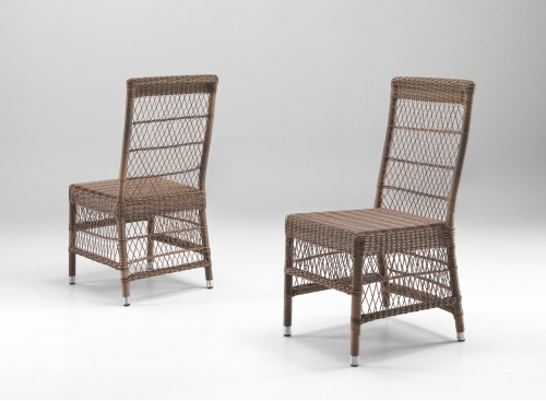 Коллекция уличной мебели Camille с алюминиевым каркасом и плетением из полиэтиленового волокна REHAU.