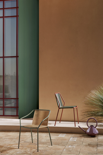 Philía - это коллекция традиционных итальянских садовых сидений, напоминающая непринужденный образ жизни на открытом воздухе, типичный для итальянской «сладкой жизни» шестидесятых годов. Обеденные стулья и кресла характеризуются рациональными и геометрическими линиями, которые сочетаются с более мягкими формами, типичными для человеческого тела. Philía отличается прочной стальной рамой, а корпус обернут шнуром из ПВХ с текстурированными линиями, которые благодаря плетению в горизонтальном направлении пересекаются в центре, что обеспечивает эластичность и высокую устойчивость. Плетение ручной работы придает сиденью мягкость и комфорт, а также индивидуальный вид.