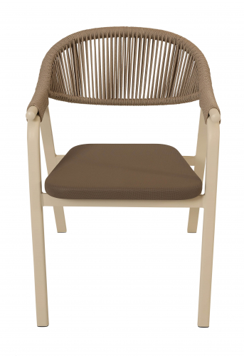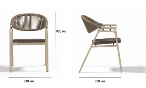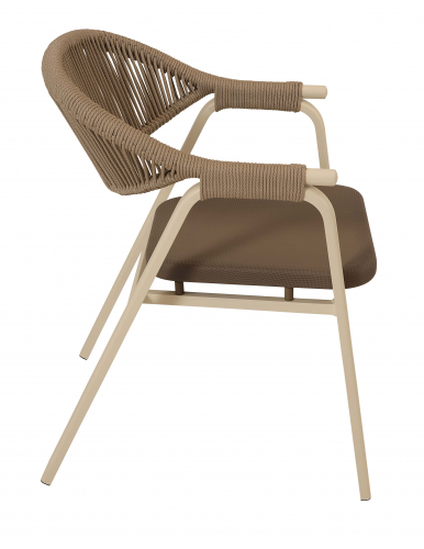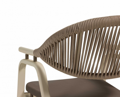 Металлический каркас кресла, выполненный из алюминия, гарантирует устойчивость к атмосферным воздействиям и долгий срок службы.Спинка, выполненная из прочного и эластичного роупа, обеспечивает комфортную поддержку спины и приятные тактильные ощущения.