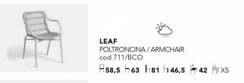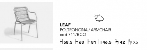 Новая коллекция Leaf ценится за свою элегантность и легкость. Коллекция имеет прочный алюминиевый каркас, обтянутый синтетическим канатом (роупом) ручной работы. Кресла идеально подходят для создания обеденной зоны на открытом пространстве.
