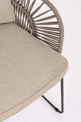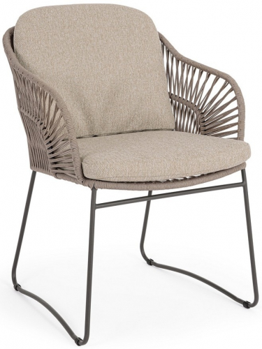 Кресло Carles - это современный предмет мебели интересной формы и цвета, благодаря которому он оживит любое пространство, в котором находится. Кресло привлекает внимание и станет прекрасным дополнением столовой зоны на открытом пространстве. Оно изготовлено из стали и имеет мягкие подушки на сиденье и спинке. Подлокотники и продуманная конструкция гарантируют комфорт во время использования. Плетеный корпус придает креслу удивительный характер. Эргономичная форма кресла способствует более длительному отдыху. Ножки-полозья обеспечивают хорошую устойчивость.