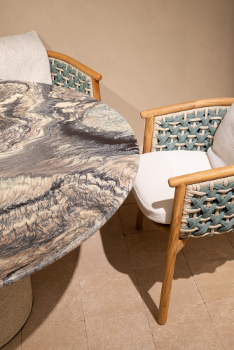 "Коллекция Patio, - говорят дизайнеры Zanellato/Bortotto Studio, - это результат нашей страсти к разнообразию плетений и узоров, которые мы обнаруживаем во время наших путешествий. Мы разработали серию мотивов в виде 3D-поверхностей, которые могли бы стать украшением и структурой серии элементов для сидения на открытом воздухе. Последние становятся настоящими рамами из дерева и тика, в которые искусные мастера вплетают плотные узоры, основанные на наших предложениях, тестах и вдохновении, собранных для этого нового проекта Ethimo".