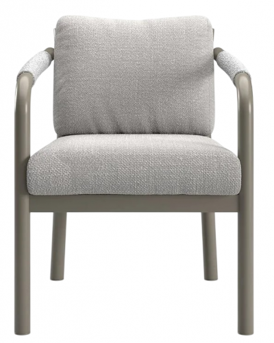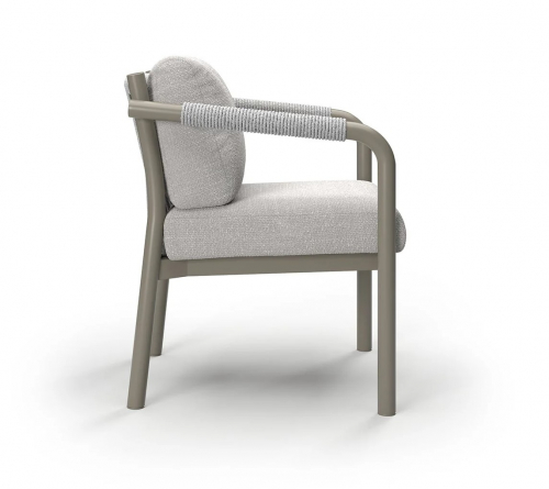 Кресло Lorvain демонстрирует сдержанную элегантность и точность форм. Сочетает прочность и эстетическую утончённость: устойчивая к воздействию влаги и перепадам температур алюминиевая рама с порошковым покрытием обеспечивает долговечность при уличной эксплуатации, а детали из плетеной вручную акриловой веревки придают изделию благородную фактуру и визуальную лёгкость. Кресло идеально для открытых пространств: террас, патио или садовых зон отдыха.
