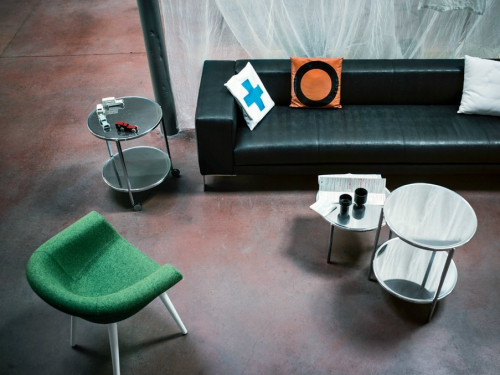 Каркас кресла выполнен из поликарбоната, формованного под давлением. Сиденье и спинка выполнены из пенополиуретана, обитого тканью - Kvadrat “Divina MD” или “Divina Melange”, или кожей.
