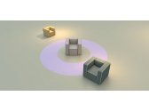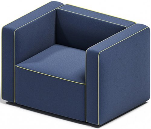 Кресло Qbot с уникальным характером в современном стиле, идеально подходящим для украшения эклектичных и элегантных интерьеров, доступно в широком ассортименте обивочных тканей, с окантовкой, подчеркивающей его правильные формы.