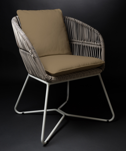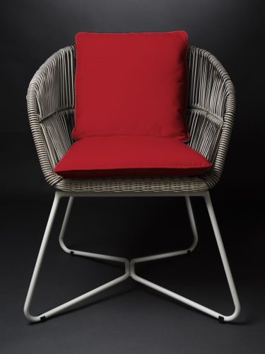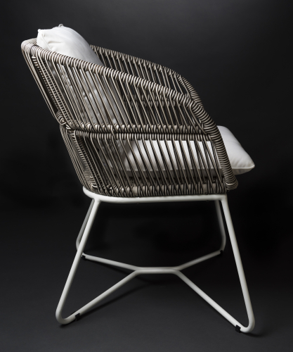 Каркас выполнен из алюминия, окрашенного в белый цвет. Плетение изготавливается вручную из высококачественного полираттанового волокна REHAU® (полиэтилен высокой плотности).
