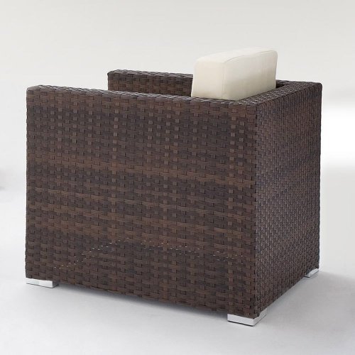 Кресло Sole из синтетического ротанга (полиэтилен) выполнено в современном стиле. Каркас - из алюминия, это делает модель легкой и в то же время прочной, полиэтиленовое плетение - очень стойкий материал, подходящий для открытых пространств. Чехлы на подушках съемные. Модель прекрасно подойдет для террасы загородного дома или зоны отдыха в отеле или спа-комплексе.