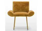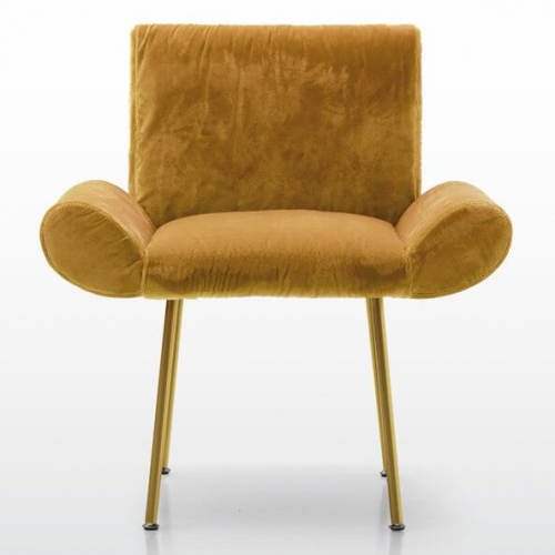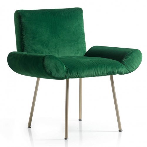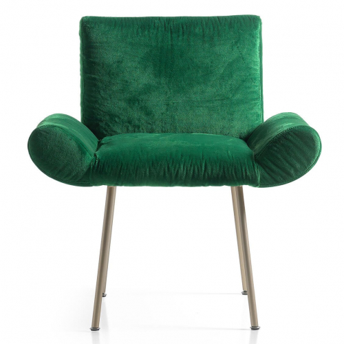 Ginevra - коллекция кресел с плавными и изысканными линиями для общественных заведений, которая также идеально подходит для частных интерьеров и номеров отелей. Наполнение кресел - резина различной толщины для обеспечения высокого уровня комфорта. Металлический каркас доступен с несколькими вариантами отделки. Сиденье, спинка и подлокотники могут быть покрыты кожей или тканью с винтажным эффектом или с использованием драгоценного и изысканного бархата Rubelli. Благодаря компактным размерам, особой конструкции подлокотников и возможности индивидуальной адаптации, кресла обладают эстетичностью и изысканной элегантностью.