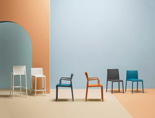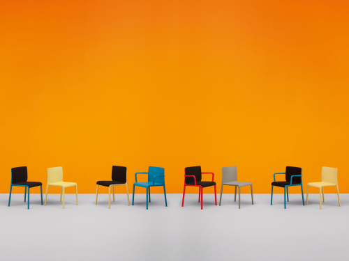Коллекция Volt элегантна и гостеприимна. Она характеризуется тонкими линиями, эргономичной формой и приятными пропорциями. Стул, изготовленный из стеклопластика (полипропилен, армированный стекловолокном), отлит под давлением методом газовой формовки. Мягкое сиденье со спинкой могут быть выполнены из различных тканей.