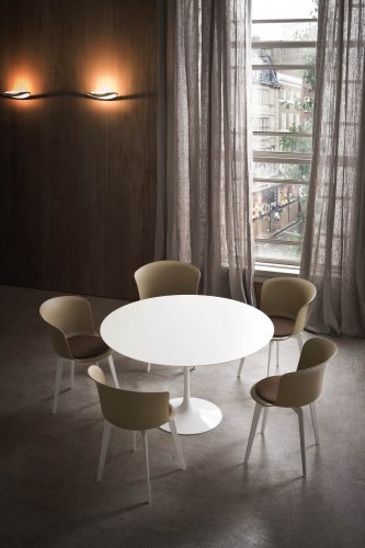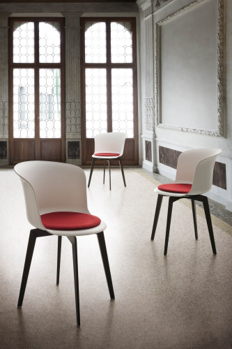 Стулья коллекции Epica полностью изготовлены из технополимера, а версия Epica Eco - из древесной массы. Сиденье доступно в фиксированной версии, с поворотом на 360° или с возвратно-поступательным движением, позволяя сиденью полностью вернуться в исходное положение.