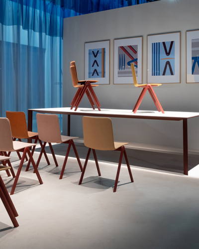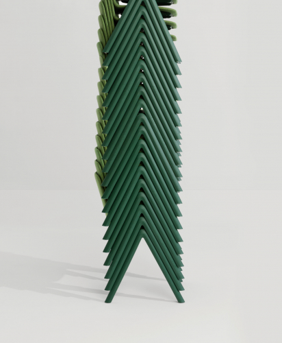 Оригинальный и эклектичный стул Stack состоит из двух элементов (основания и корпуса), соединенных без винтов с помощью инновационной системы крепления. Основание, состоящее из двух циркулей с секциями, предназначено для потенциально бесконечного штабелирования, а конструкция корпуса обеспечивает удобное сидение. Возможность замены корпуса, выбор между различными материалами и отделками позволяет обновить индивидуальность стула, тем самым продлевая его жизненный цикл. Запатентованная система крепления, разработанная для серии Stack, облегчает сборку и оптимизирует транспортировку стульев с ощутимыми преимуществами, в том числе с точки зрения устойчивости.