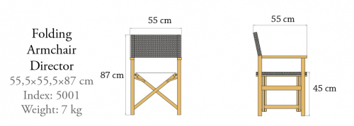 Обеденная коллекция Director идеально подходит как для обеда дома или на террасе, так и для объектов общепита - ресторанов, кафе, баров, гостиниц, отелей. Кресло, повторяющее знаменитый дизайн кресла режиссера и обеденные столы двух размеров выполнены из твердой древесины робинии.