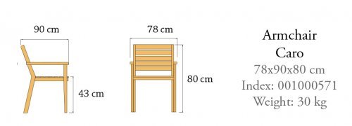 Кресло Caro без подушки. Коллекция мебели Caro была создана для того, чтобы подчеркнуть роль обеденной комнаты - ее также можно расположить в зоне барбекю или террасе загородного дома. Кресло прекрасно подойдет для групповой трапезы или празднования значимых событий. Минималистичная форма вне времени, выполненная из массива робинии, в комбинации с солидной конструкцией делают мебель из коллекции Caro универсальной в использовании и всегда актуальной в плане дизайна.