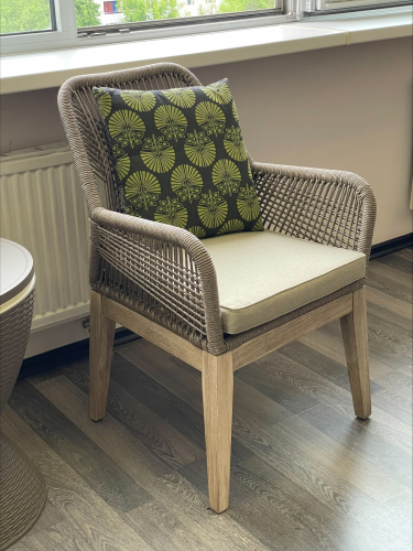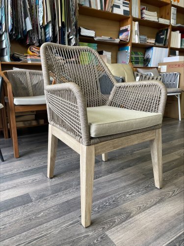 Изготовленное из массива акации, полученного экологически безопасным способом, в сочетании с ручным плетением из роупа, кресло Belle идеально подходит для придания нотки тренда и индивидуальности любому пространству, как в помещении, так и на открытом воздухе. Переплетение веревок на спинке и подлокотниках создает очень гармоничную визуальную игру пересечений и обеспечивает изысканный небанальный эстетический вид.
