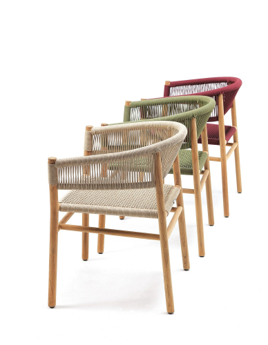 Кресло Kilt штабелируется и отвечает всем требованиям комфорта: использование плотного переплетения веревки для формирования спинки, перетекающей в подлокотники, обеспечивает как оптимальный комфорт, так и устойчивость к погодным условиям.