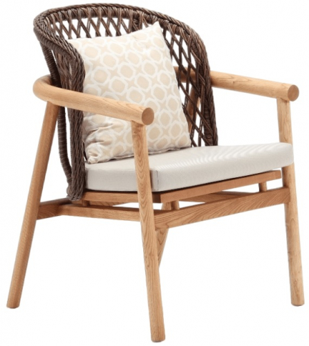 Уличное деревянное кресло Inci со спинкой из искусственного ротанга и подушками из погодостойкой ткани идеально подходит для создания уютной обстановки на открытой террасе ресторана или кафе, придавая пространству стильный и современный вид. В домашнем использовании такое кресло станет прекрасным акцентом в саду или на балконе, обеспечивая комфортное место для отдыха и релаксации под открытым небом. Благодаря своей прочной конструкции и материалам, устойчивым к воздействию погодных условий, кресло также подходит для использования в отелях, где требуется надежная и эстетичная мебель для открытых зон.