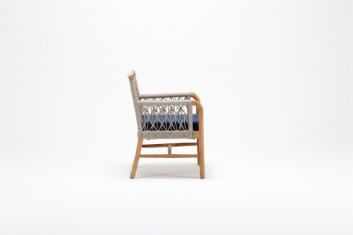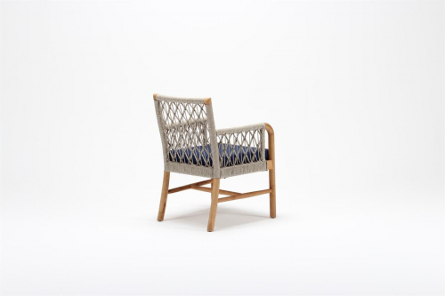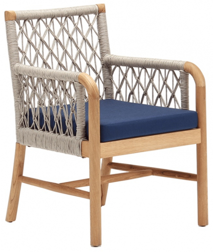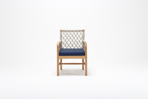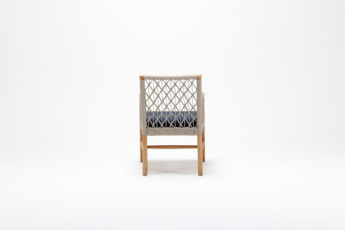 Уличное деревянное кресло Palma с уникальным красивым ромбовидным плетением из искусственного ротанга на спинке и подлокотниках и подушкой сиденья из погодостойкой ткани прекрасно подойдет для создания стильной атмосферы на открытой террасе ресторана или кафе, обеспечивая посетителям комфорт и эстетичность. В домашнем использовании такое кресло станет элегантным дополнением к садовой зоне или веранде, создавая уютное место для обеда под открытым небом. Благодаря своему стильному дизайну и высокому качеству материалов, оно также идеально подходит для использования в престижных отелях, где важно сочетание роскоши и функциональности в мебели.