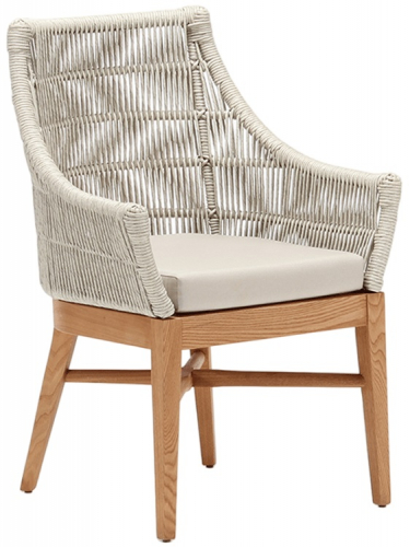 Уличное кресло Hyac с деревянным каркасом, корпусом из оригинального плетения искусственного ротанга и подушкой из погодостойкой ткани идеально подходит для облагораживания открытых пространств ресторанов, кафе и отелей, добавляя элегантности и комфорта в экстерьер заведения. В домашнем использовании такое кресло станет стильным и удобным элементом мебели на террасе или в саду, где оно создаст уютное место для обеда и проведения времени с семьей и друзьями. Благодаря качественным материалам и устойчивости к погодным условиям, это кресло обеспечит долговечное и комфортное использование как в коммерческих, так и частных пространствах.