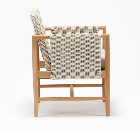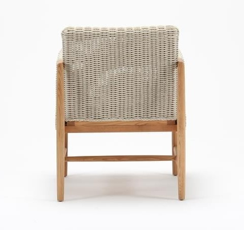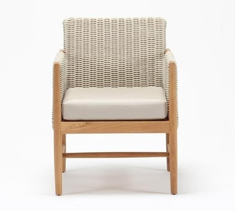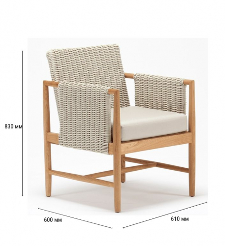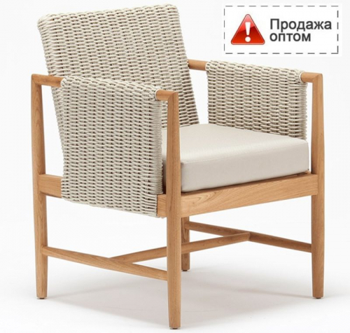 Уличное деревянное кресло Nora с уникальным плетением из искусственного ротанга на спинке и подлокотниках, подушкой сиденья из погодостойкой ткани прекрасно подойдет для создания стильной атмосферы на открытой террасе ресторана или кафе, обеспечивая посетителям комфорт и эстетичность. В домашнем использовании такое кресло станет элегантным дополнением к садовой зоне или веранде, создавая уютное место для обеда под открытым небом. Благодаря своему стильному дизайну и высокому качеству материалов, оно также идеально подходит для использования в престижных отелях, где важно сочетание роскоши и функциональности в мебели.