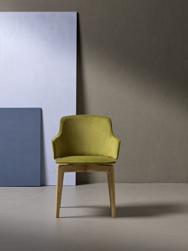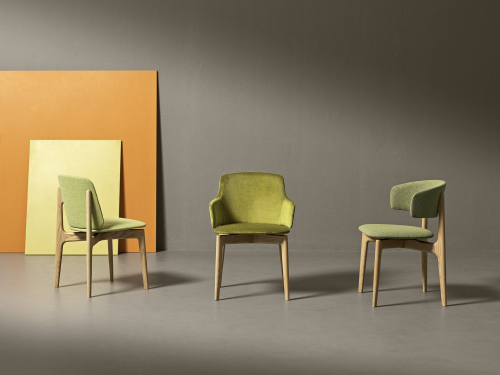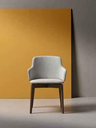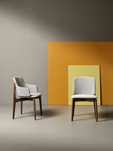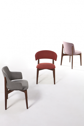 Egadi – это коллекция, состоящая из обеденного стула, кресел, кресла для отдыха и барного стула, доступного в двух вариантах высоты. Обеденное кресло, изготовленное из ясеня, сочетает в себе прочную и устойчивую конструкцию с элементами обивки. Сиденье обладает скульптурной формой, которая смягчается мягкими деталями, изящно подвешенными между тонкой высокой спинкой и скрещенным каркасом на четырех ножках. Модель доступна в широком ассортименте тканей и отделок каркаса.