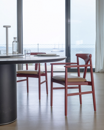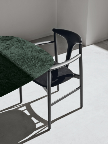 Дизайнер Кенсаку Осиро, создатель культовых столов Holo и Holo Pillar, разработал коллекцию сидений Tonbo, вдохновленную японской эстетикой и искусством краснодеревщиков. Визитной чертой стула и кресла является спинка с органичными линиями, которая изящно опирается на каркас, как стрекоза - «Тонбо» по-японски. Особые закругленные соединения создают этот деликатный эффект.