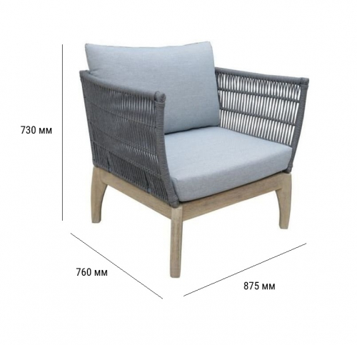 Иногда мелкие детали могут решить все! Сочетая в себе прочную выбеленную древесину твердых пород АКАЦИИ, холодно-серую двойную оплетку морского каната и водостойкие, легко чистящиеся мягкие подушки светло-серого оттенка, уличное кресло для отдыха River обеспечивает идеальный баланс между долговечностью и стилем.