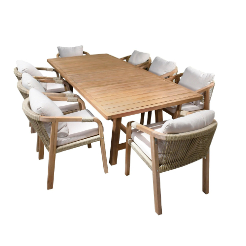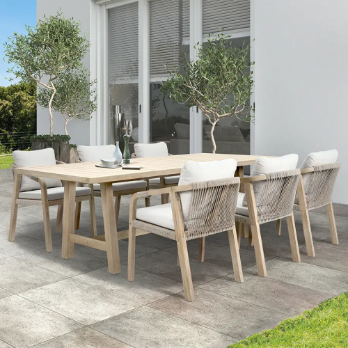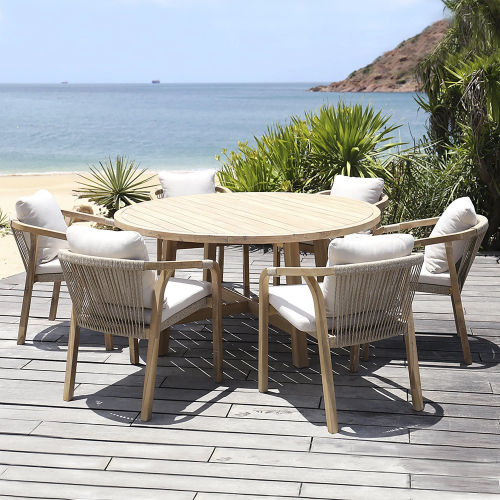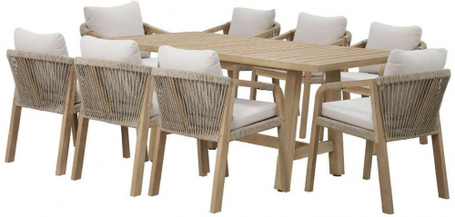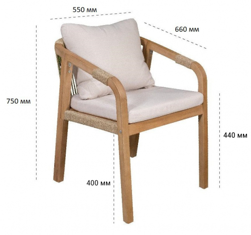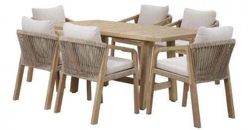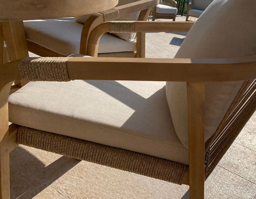 Rimini - это современное садовое обеденное кресло из АКАЦИИ, выполненное в комбинации натурального веревочного плетения роуп, акации и бежевых подушек. Цвет натуральной твердой древесины представляет собой натуральный цвет с мелкой текстурой, придающий древесине приятный теплый вид. Rimini - это стиль и элегантность на Вашей веранде.