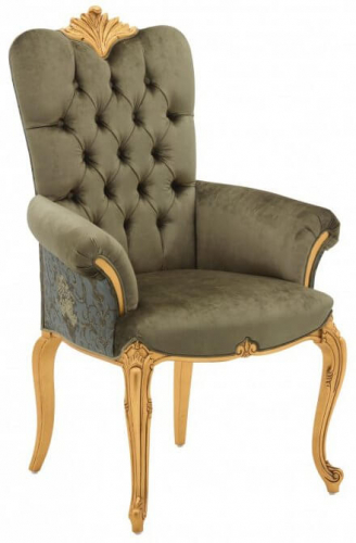 Элегантное кресло Bronte в классическом стиле с каркасом древесины бука имеет множество резных деталей и характерный резной герб, которые могут быть отделаны лаком сусального золота или серебра (оплачивается отдельно). Модель относится к коллекции Classic. Эксклюзивные дизайнерские изделия ручной работы придадут интерьеру классический и роскошный итальянский стиль. Высококачественная традиционная итальянская мебель - синоним роскошного классического стиля, 100% произведенная в Италии, с возможностью индивидуального оформления в нескольких вариантах отделки. Для мебели классического дома самым используемым материалом, безусловно, является дерево, которое до сих пор вырезано вручную. Цвета обивки - кожи или ткани - теплые и элегантные, но всегда не броские.