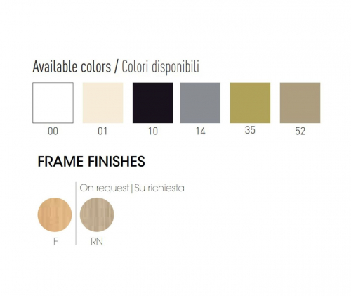 Корпус из технополимера, пригодный для использования внутри или снаружи помещения; деревянные, пластиковые или стальные каркасы делают Moema пригодными для различных целей. Модели с металлическим каркасом и каркасом из полимерной стали подходят как для внутреннего, так и для наружного использования, версия с металлической структурой может комплектоваться до 4 штук и имеет сертификат CATAS.