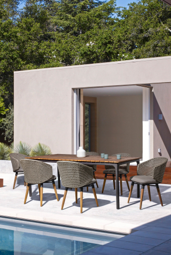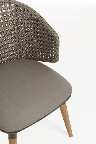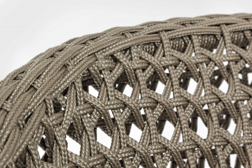 Кресло Ninfa идеально подойдет для интерьеров и открытых пространств в частных резиденциях. Аксессуар для интерьера, созданный из прочных и устойчивых к атмосферным воздействиям материалов, придаст правильную нотку современности любому пространству. Каркас выполнен из алюминия с порошковым покрытием (полиэстер), ножки - из тикового дерева SVLK (индонезийская легальная древесина) с отделкой рустик. Плетение выполнено из полипропиленового каната, водоотталкивающей и устойчивой к ультрафиолетовому излучению. Несъемная подушка на сиденье наполнена быстросохнущей пеной с чехлом из ткани sunbrella (100% акрил).